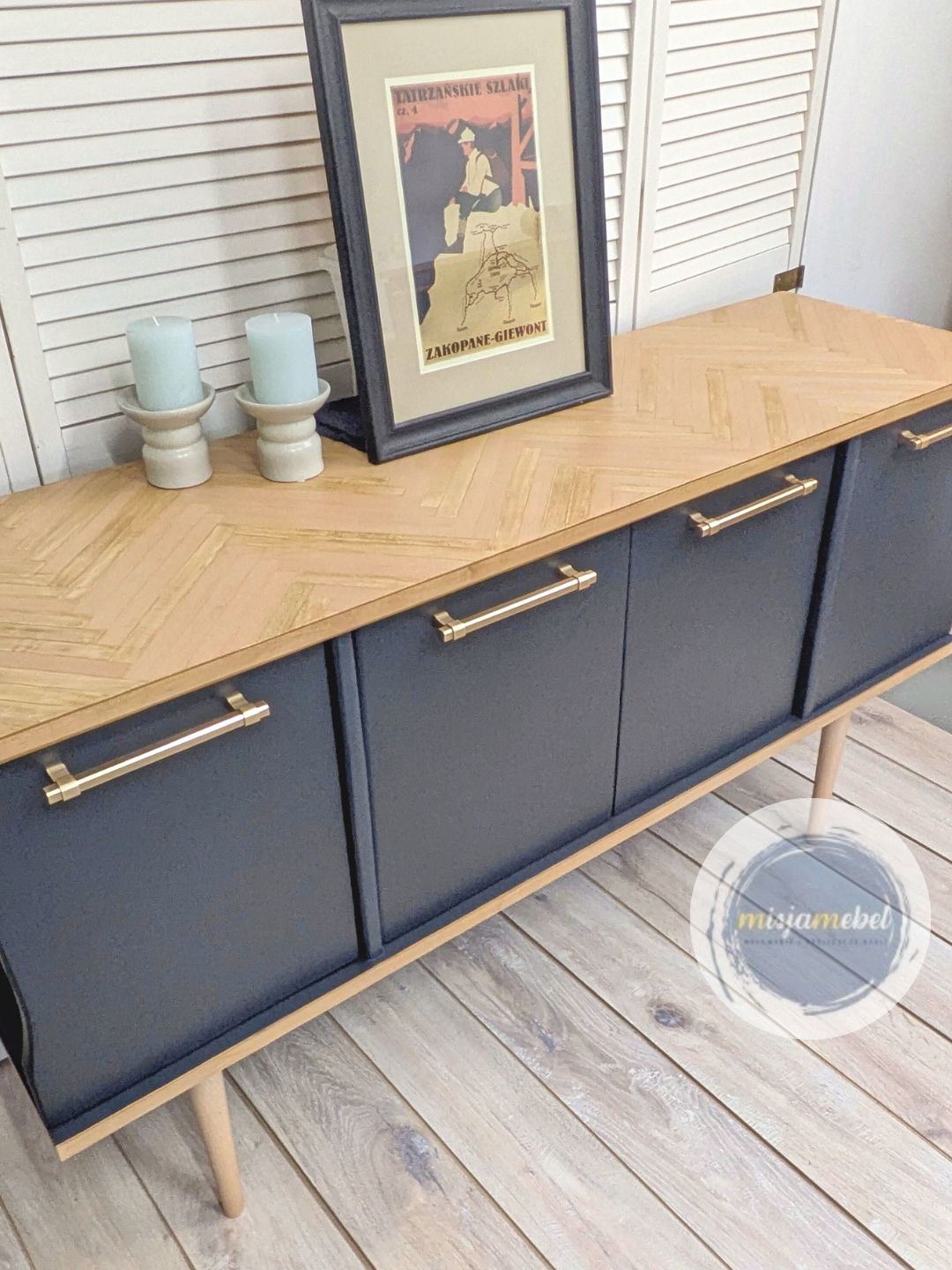- nakładaj 1-3 warstwy w odstępach od 2 do 4 h pędzlem lub wałkiem do farb akrylowych. Jeżeli chcesz osiągnąć efekt bardziej nowoczesny (bardziej gładką powierzchnię) każdą warstwę po wyschnięciu warto zmatowić drobnym papierem ściernym o gradacji 220